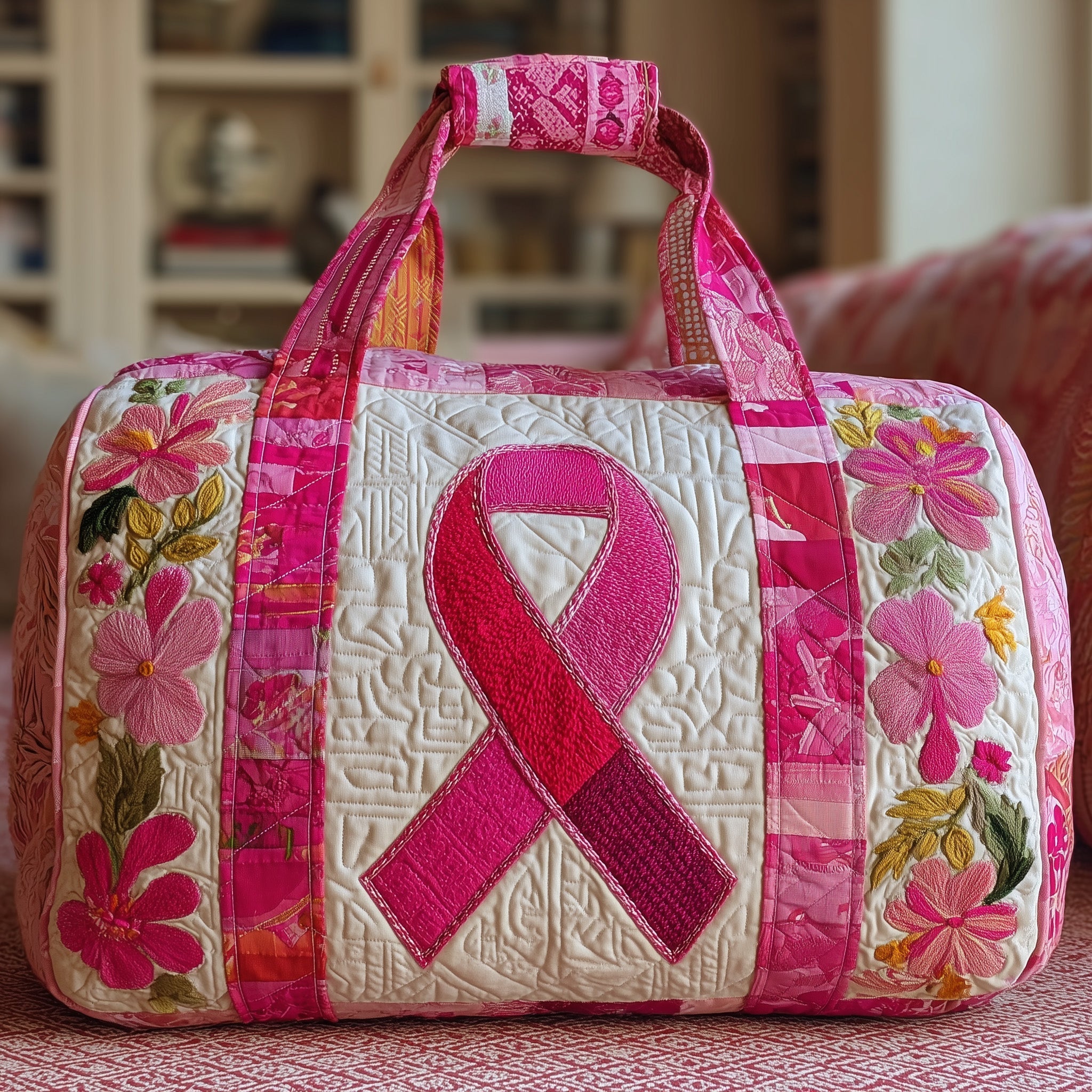 Breast Cancer Ribbon Quilted Duffle Bag GFTONL5164