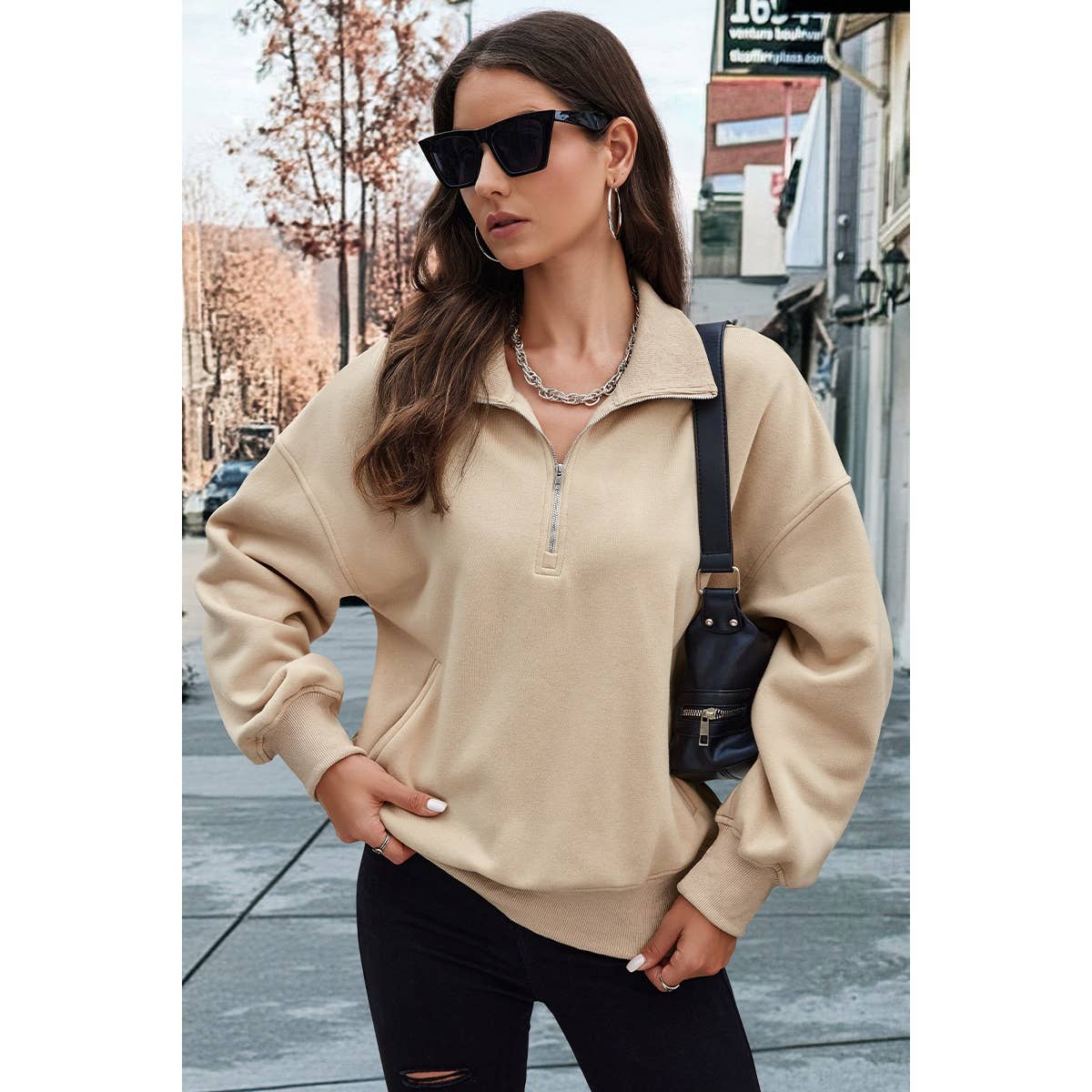 Drop Shoulder Zipper Loose Fit Pockets Hoodie