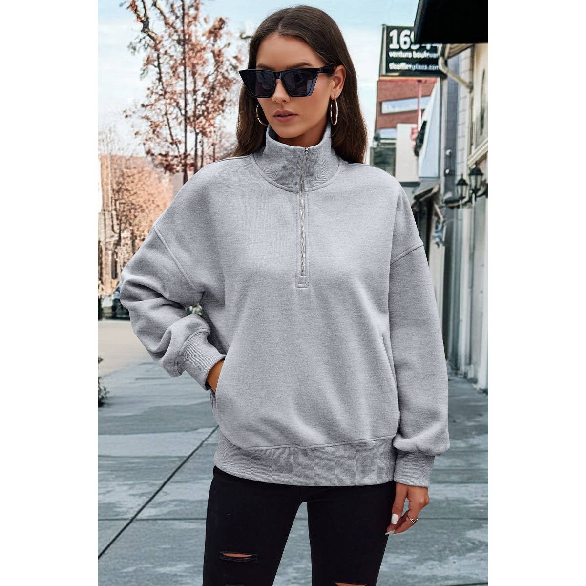 Drop Shoulder Zipper Loose Fit Pockets Hoodie