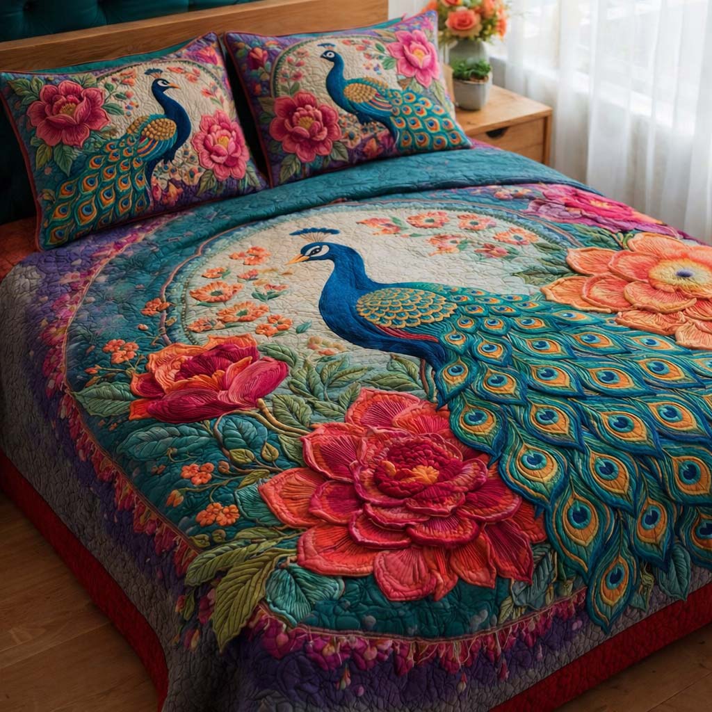 Elegant Peacock 3-Piece Quilted Bedding Set GFTOQA1536