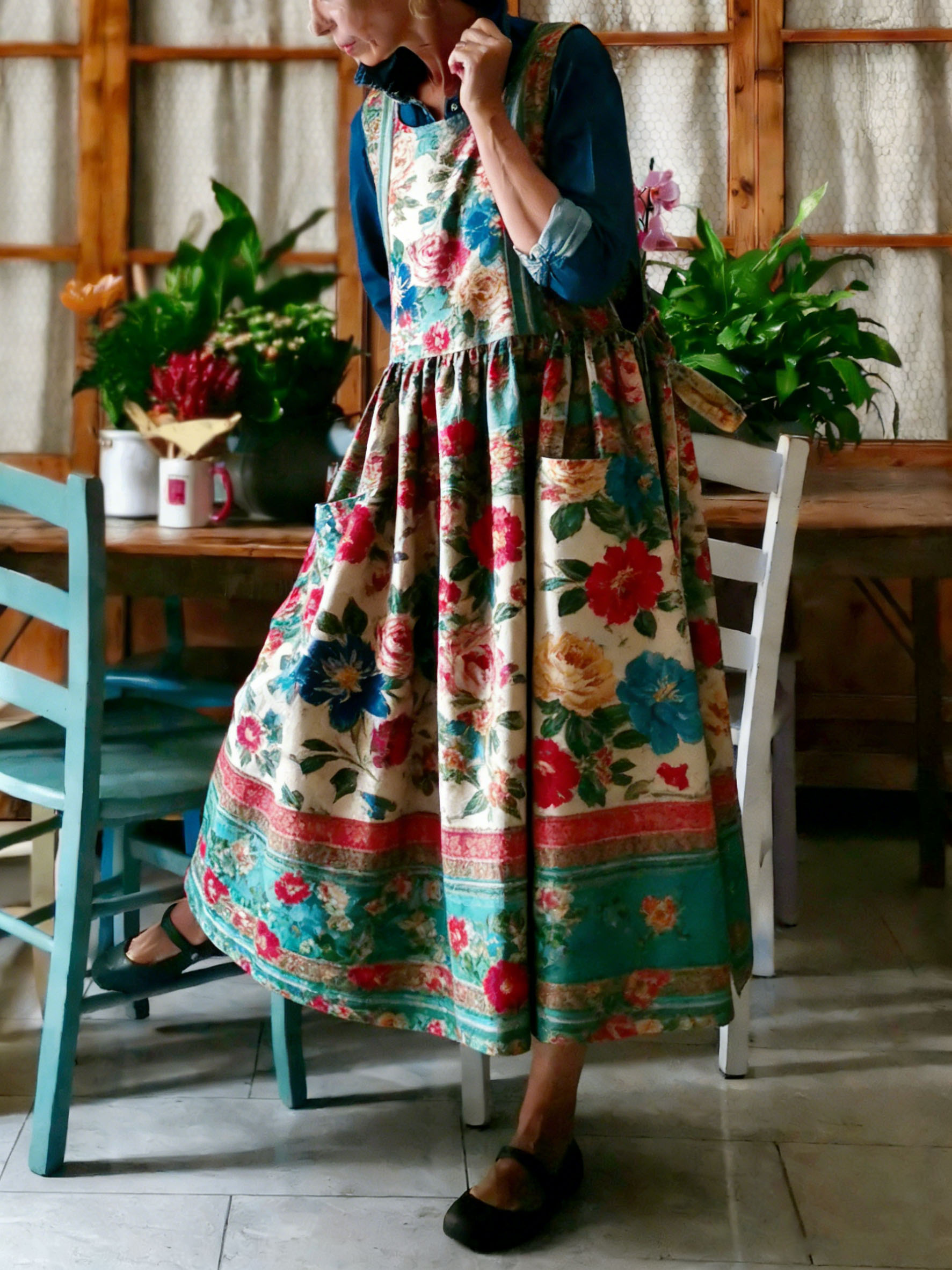 Floral Print Apron-0107