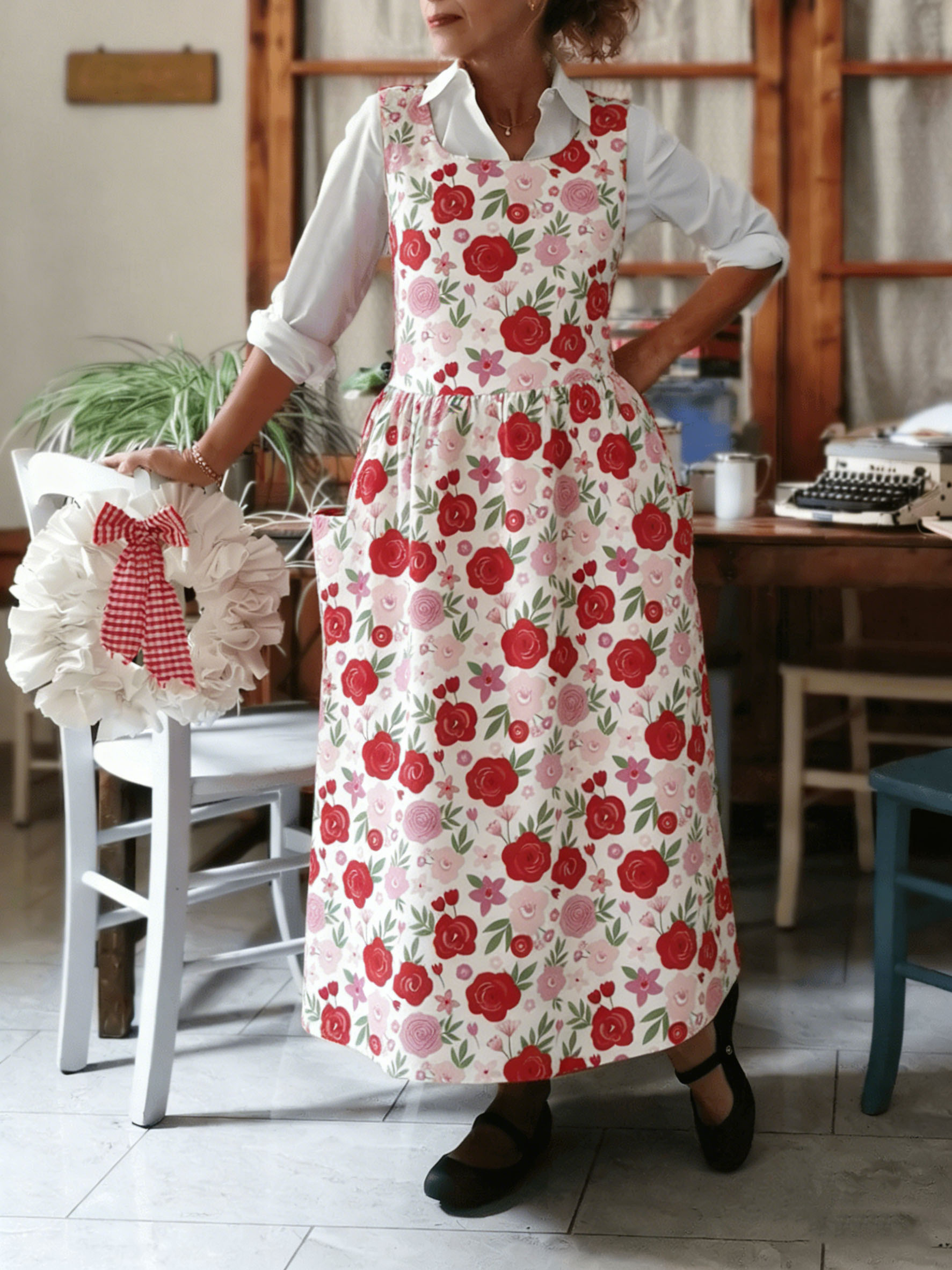 Floral Print Apron-0107