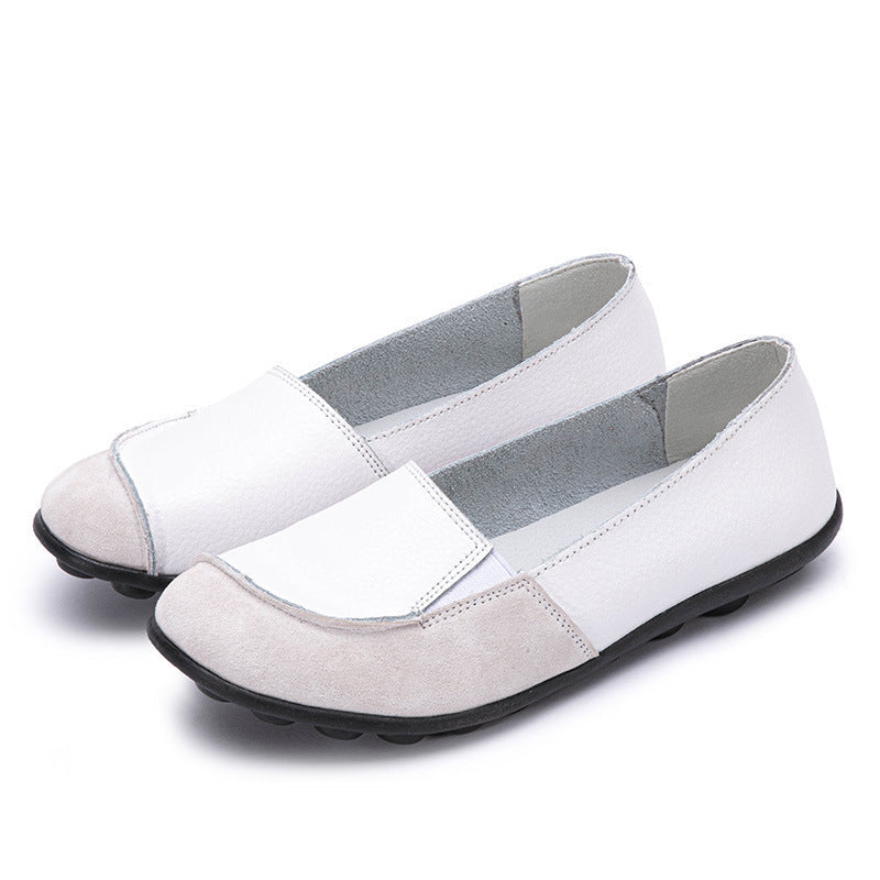 Upper Material: Split Leather Lining Material: Genuine Leather Fashion Element: Shallow Outsole Material: Rubber Season: Spring/Autumn Closure Type: Slip-On Pattern Type: Print Toe Shape: Round Toe Fit: Fits True to Size, Take Your Normal Size Item Type: Flats Occasion: Casual Toe Style: Closed Toe