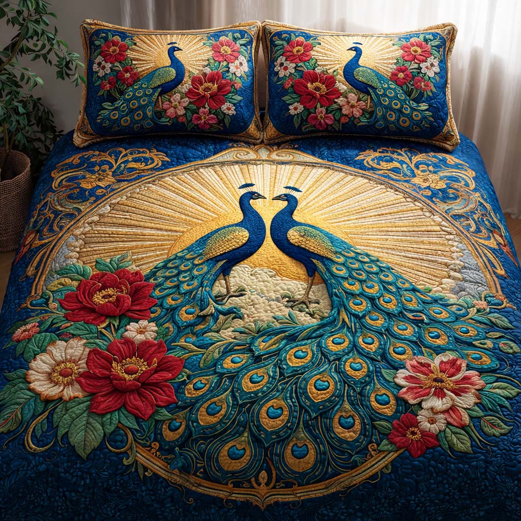 Peacock Love 3-Piece Quilted Bedding Set GFTOQA1538