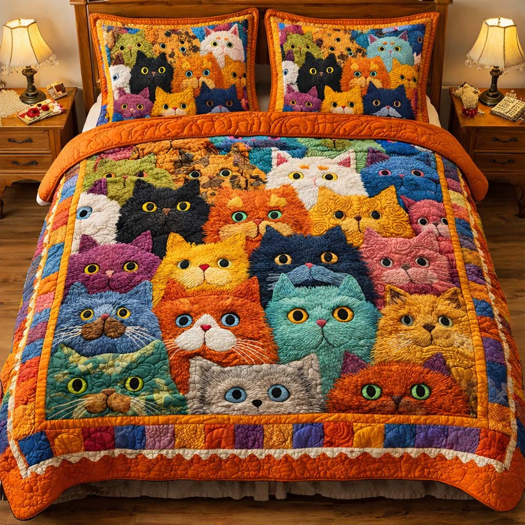 Playful Cats 3-Piece Quilted Bedding Set GFTOQM2609