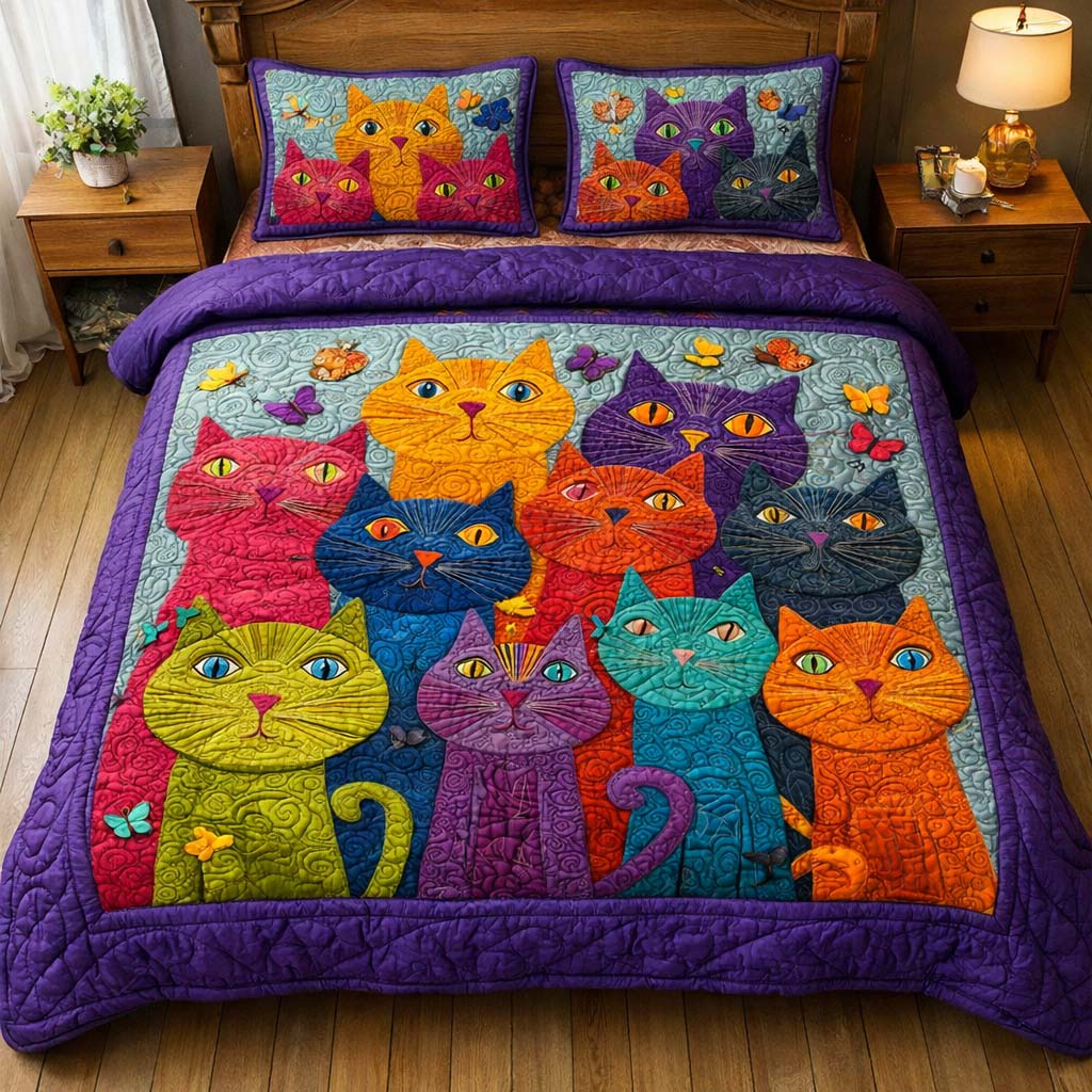 Whimsical Cats 3-Piece Quilted Bedding Set GFTOQM2608