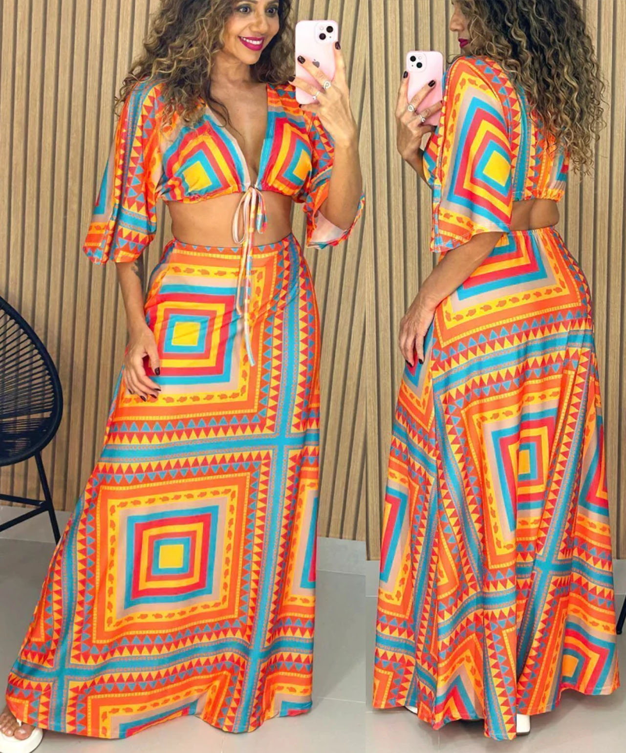 Women’s Geometric Print Maxi Dress-0129