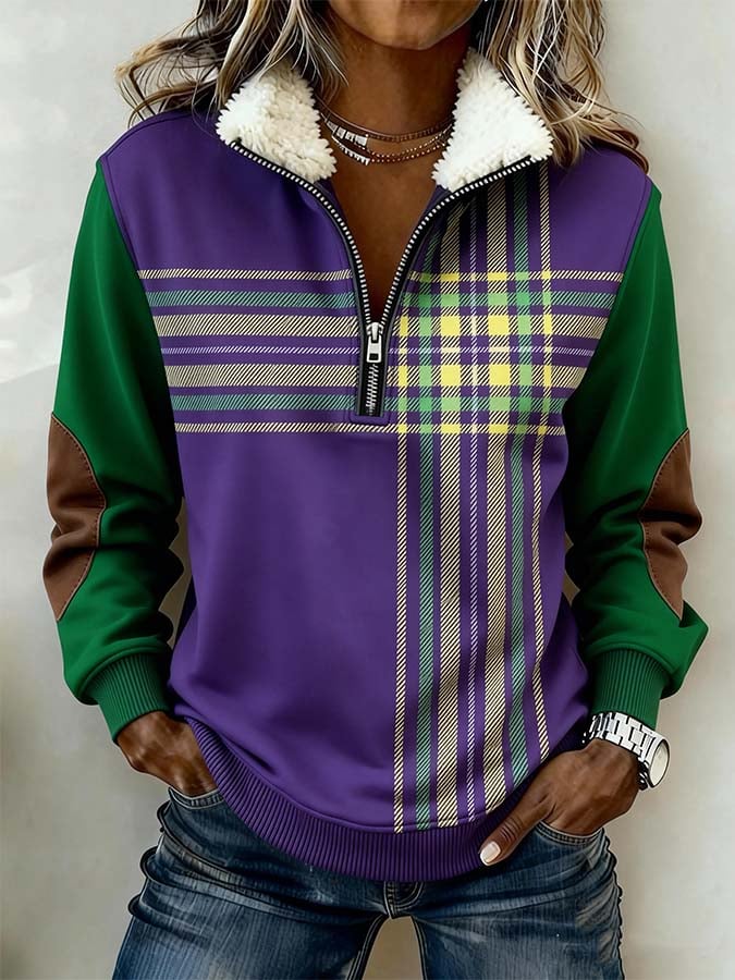 Women'S Casual Color Block Printed Pullover Sweatshirt
