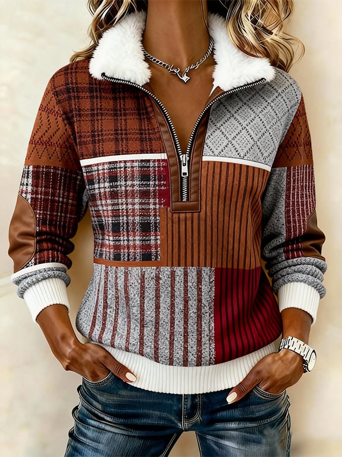 Women'S Casual Color-Blocked Pullover Sweatshirt