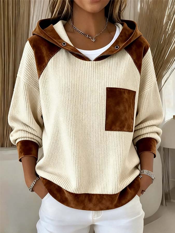 Women'S Casual Loose-Fitting Ribbed Contrast Color Stitching Long-Sleeved Sweatshirt