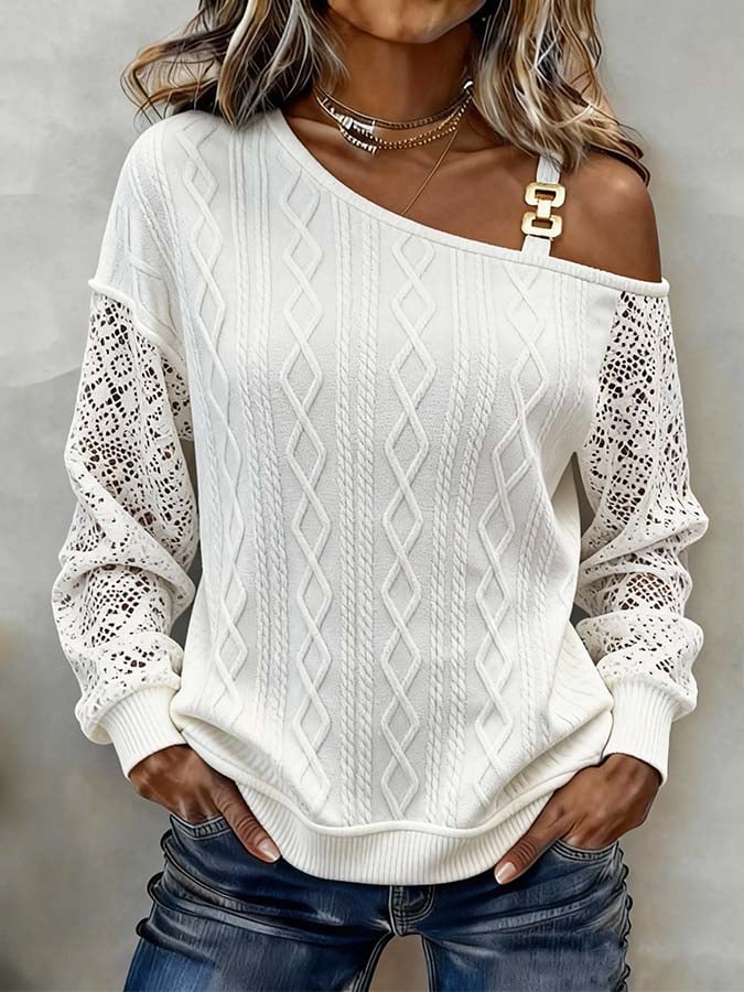 Women'S Casual Off-The-Shoulder Patchwork Top