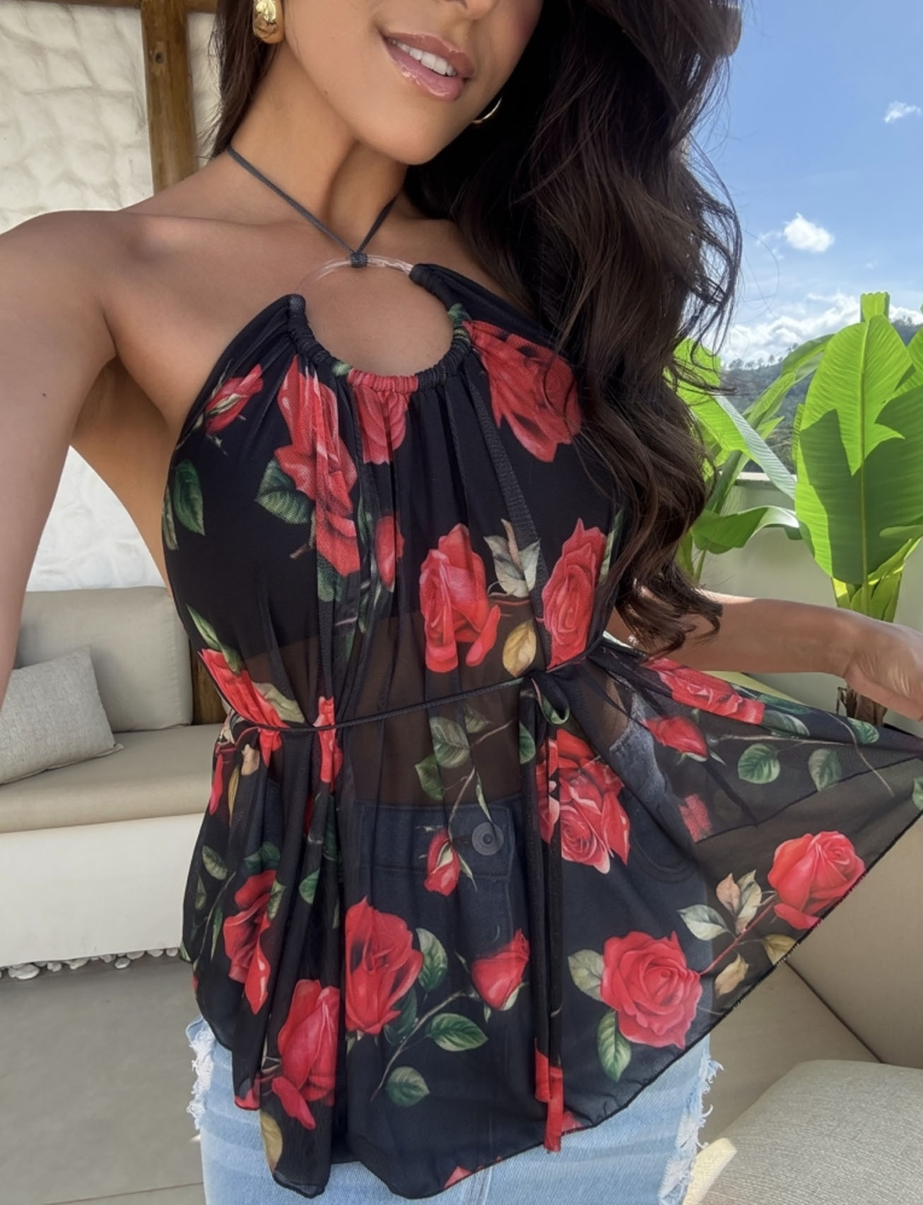Women's floral strapless camisole-0128