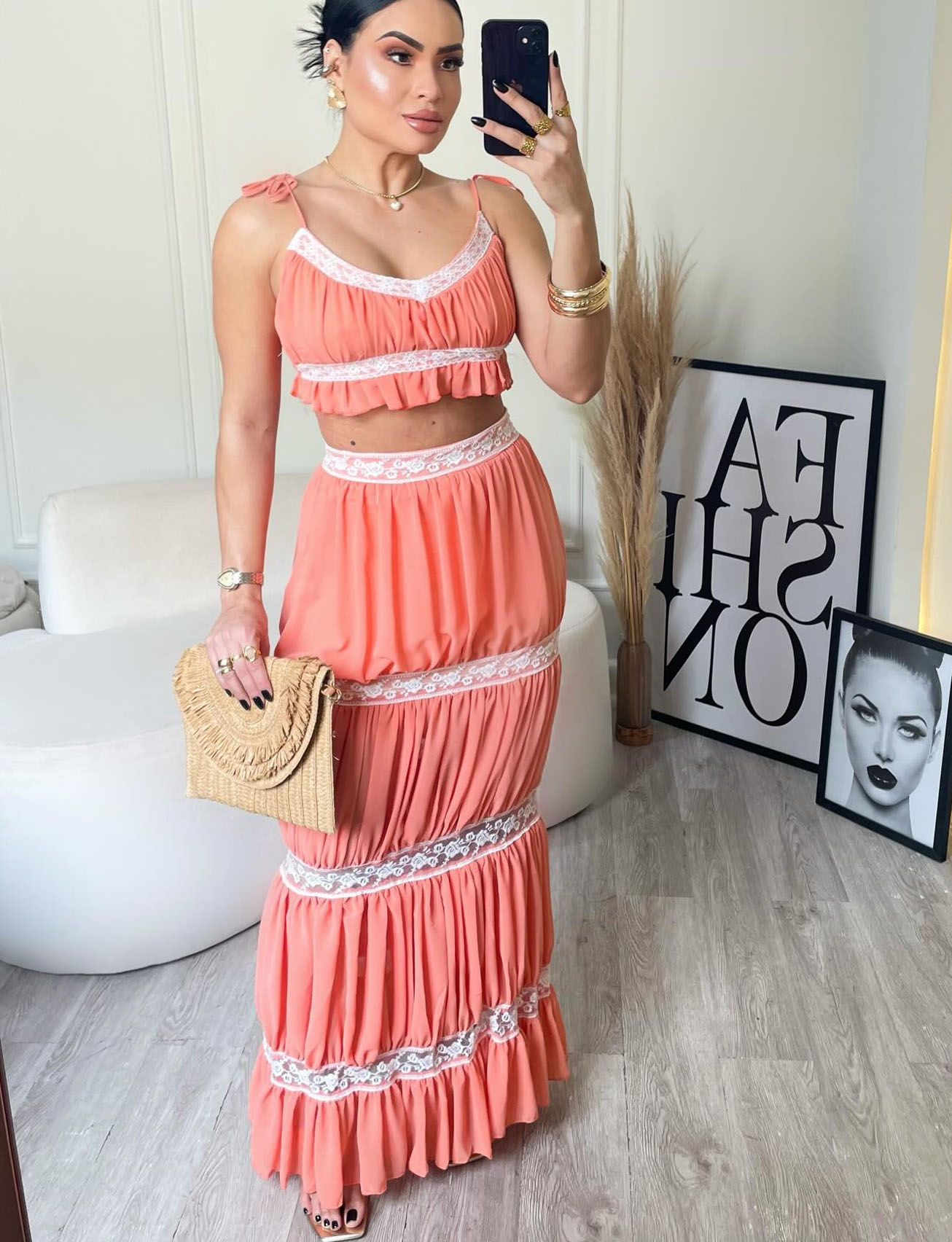 Women's Lace Patchwork Spaghetti Strap Maxi Dress-0128